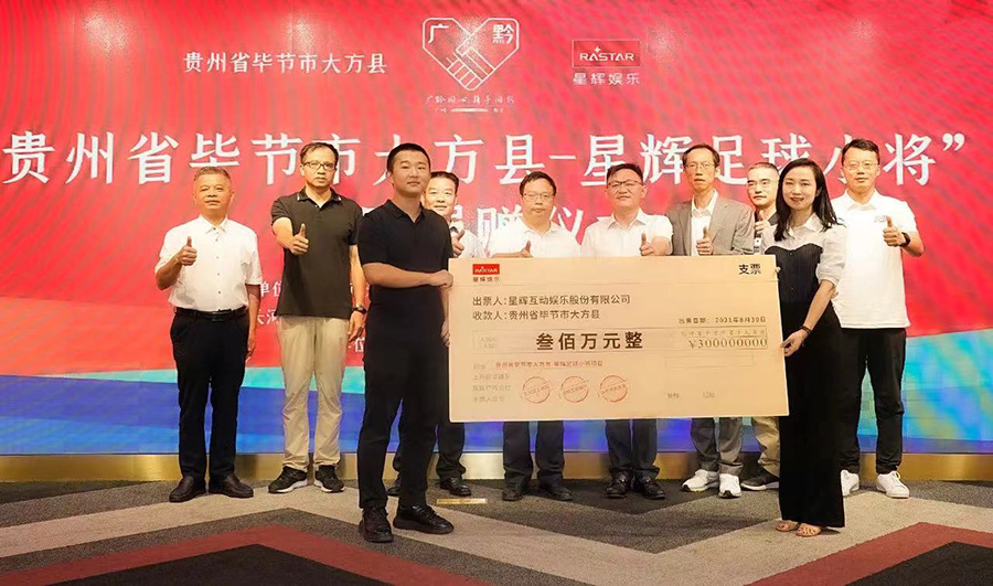 2021年8月,星輝娛樂(lè)啟動(dòng)對(duì)口幫扶貴州省畢節(jié)市大方縣的“星輝足球小將”公益項(xiàng)目。三年來(lái),項(xiàng)目累計(jì)投入300萬(wàn)元專(zhuān)項(xiàng)基金,涵蓋營(yíng)養(yǎng)餐計(jì)劃、賽事交流支持、足球訓(xùn)練補(bǔ)貼及獎(jiǎng)學(xué)金等多元幫扶內(nèi)容,全方位護(hù)航山區(qū)青少年健康成長(zhǎng),助力孩子們追逐足球夢(mèng)想。通過(guò)持續(xù)三年的精準(zhǔn)幫扶,“星輝足球小將”項(xiàng)目成效顯著,累計(jì)已助力近百名“星輝足球小將”在全國(guó)各級(jí)別足球賽捧杯,數(shù)十名學(xué)生通過(guò)足球特招進(jìn)入重點(diǎn)中學(xué)。